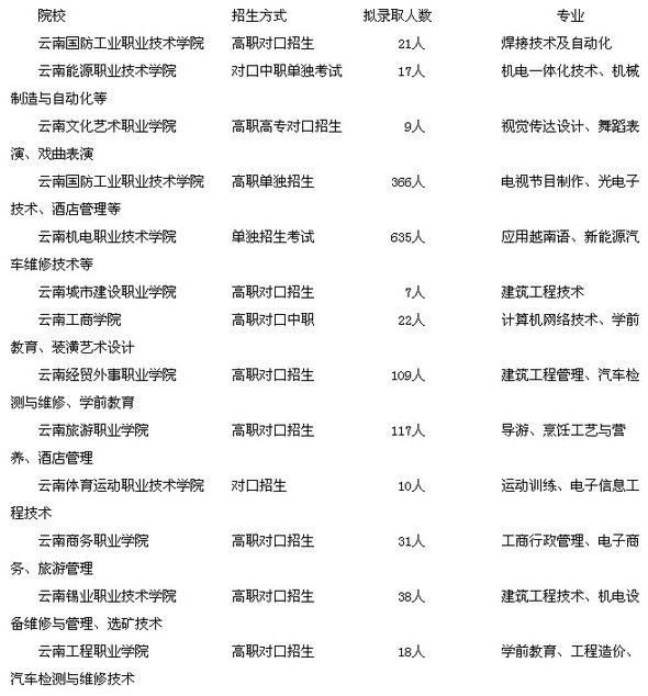 云南省示范性高职院校八所联盟2014年单独招生考试公告
