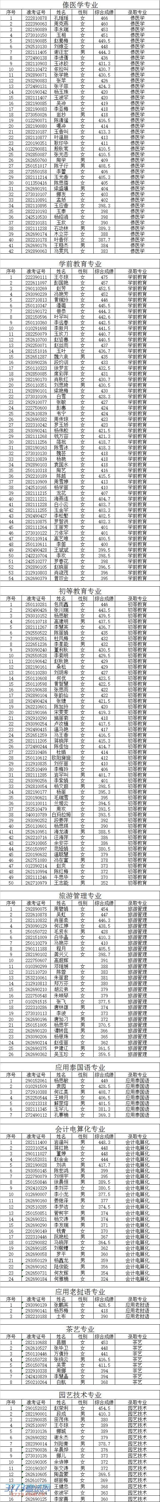 云南林业职业技术学院2014年单独招生考试预录取名单