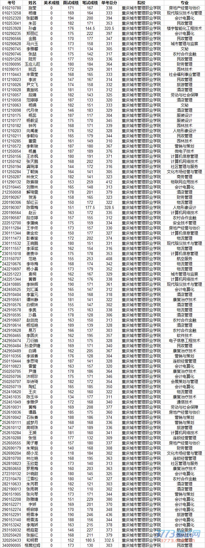 重庆城市管理职业学院2015年高职(专科)单独考试招生合格公示名单