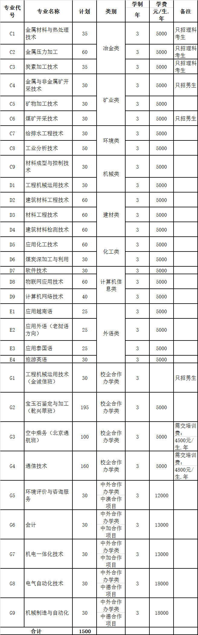 2.校企合作办学专业“工程机械运用技术”,是昆明冶金高等专科学校为金诚信矿业管理股份有限公司订单培养的专业(冠名为“金诚信班”),毕业后在金诚信矿业管理股份有限公司所属国内外公司或工程项目就业,学费、住宿费由公司资助,并提供一定生活补贴。报考该专业的考生需通过金诚信矿业管理股份有限公司考核面试。