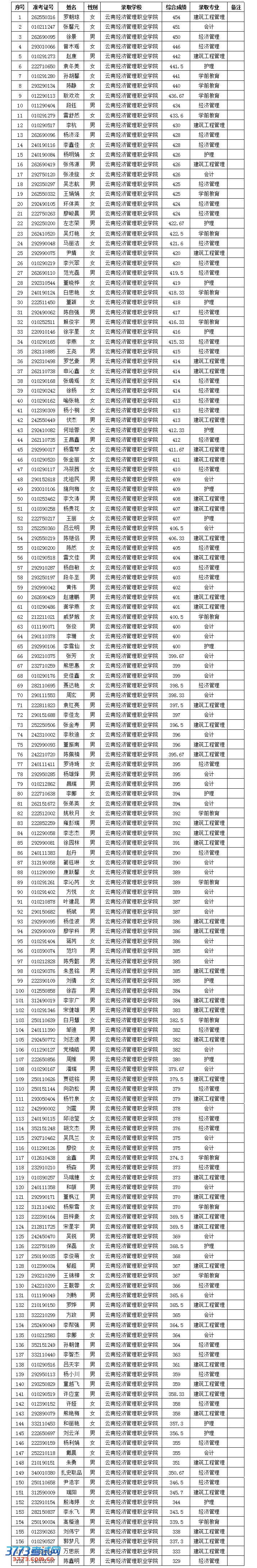 云南国防工业职业技术学院2013年单独招生预录取名单