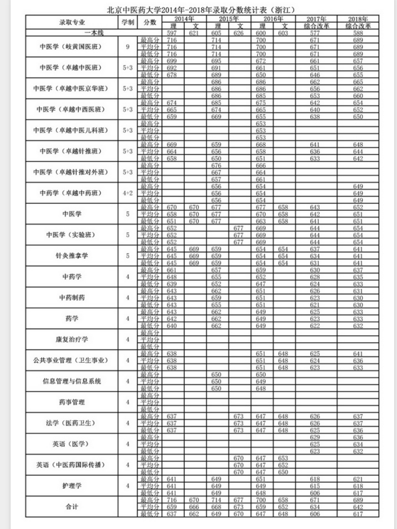 2018北京中医药大学在浙江高考录取分数线