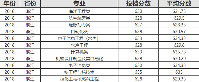 2018哈尔滨工程大学在浙江录取分数线