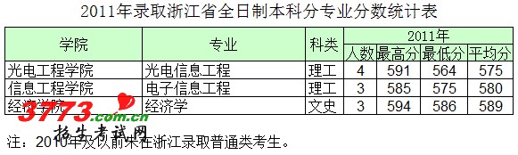 杭州电子科技大学2007-2009年在浙江招生录取分数线