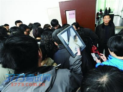 记者看到,家长和考生们装备很专业,左手拿着本子、右手拿着笔,跟现场采访的记者一样的装备,甚至比记者的装备还全。一名来自临沂的家长左手拿着录音笔,右手握着的相机开启摄像模式,“我怕一会儿出来的考生说得太多,我记不清楚,或者一些专业的名词我听不懂。”上午9时40分许,第一名考生结束面试刚走出考场,瞬间被家长们围了个水泄不通,记者原本距离这名考生很近,却生生地被探题心切的家长们挤了出来。“考了什么题目?现场有几个考官?中文题和英语题一共有几道?”家长们的提问很专业。