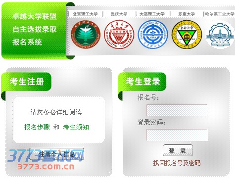 自主选拔录取考生登录本系统的用户名为卓越大学联盟自主选拔录取报名系统的报名号,即以2014开头的12位数,密码为考生的身份证号,如最后一位是字母,则大写。