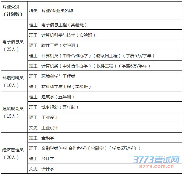 1、招生专业类别:电子信息类、建筑规划类、经济管理类和环境材料类。