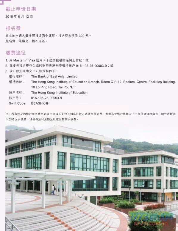 2015香港教育学院内地自主招生简章