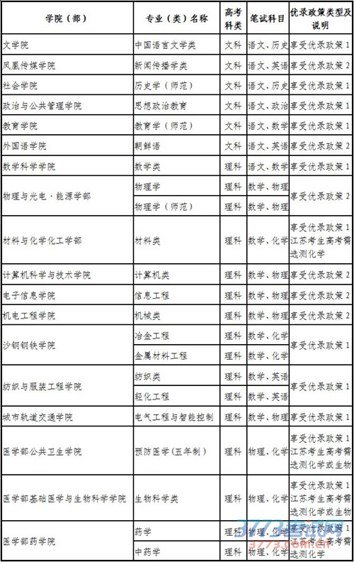 优录政策2:非江苏省考生,高考成绩在我校模拟投档线下25分以内且达到生源省份本一批(重点本科批次)同科类录取控制分数线,即予以录取;江苏省考生高考成绩须达到江苏省本一批同科类录取控制分数线、两门选测科目等级达到BB及以上且所报专业(类)符合我校选科要求,高考成绩加15分后达到所报专业最低录取分数线,即予以录取。