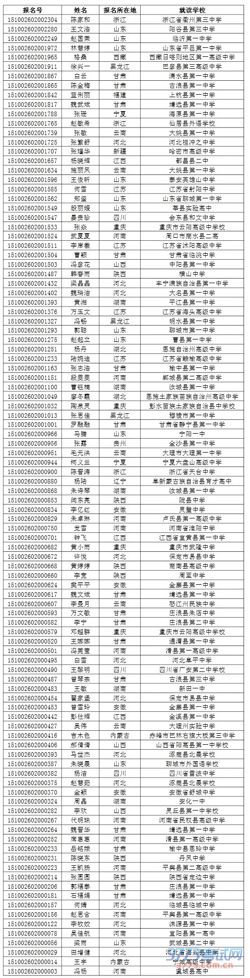 北京中医药大学2015年农村学生单独招生初审通过名单公示