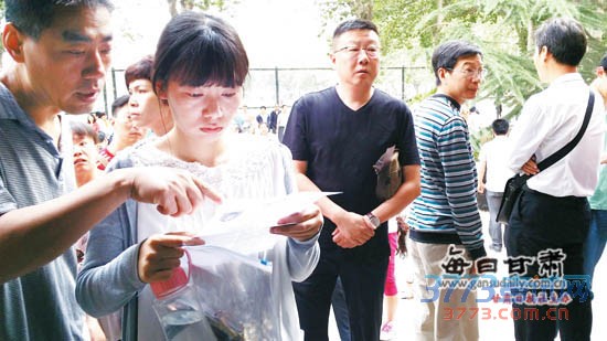 考试前家长帮孩子核对准考证。本报记者武永明摄