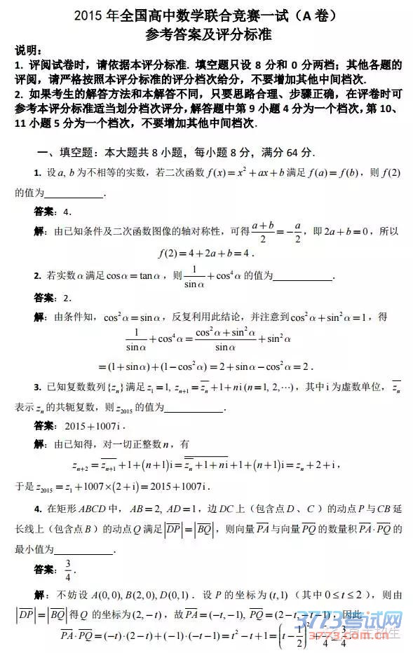 昨天上午,全国高中数学联合竞赛已经考完,现在小编把试卷发给大家看看,尤其是高一和高二的同学,提早做准备,为明年的竞赛打下基础吧!