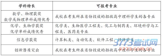 我校录取自主招生人数不超过210名。考生须根据自己的学科特长选报我校相应学科的相关专业(学科特长对应的可报考专业详见下表)。特别优秀者可获得进入工科试验班资格。
