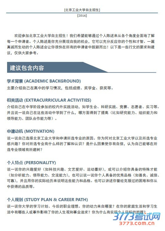 北京工业大学2016年自主招生个人陈述撰写建议 点击查看