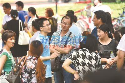 参加东大自主招生学科特长测试的考生在走出考场后向家长介绍情况。 新华社发