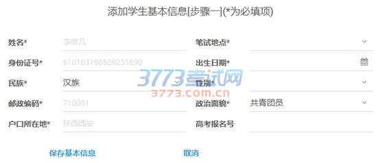 7. 点击页面上方的“添加学生[一]”,填写学生基本信息并保存