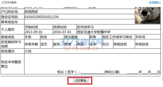11. 填写完学生所有信息后点击页面上方“打印申请表”,可打印报名草表,并分发给学生核对