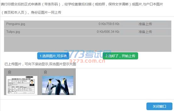 16. 正式申请表和汇总表经中学签字盖章后扫描(或拍照,保证文字清晰)成JPG格式图片,与学生户口本图片(首页及本人页)、学籍信息表首页图片、身份证图片(没有可不传)一同上传。汇总表扫描件可与任意一位学生图片一起上传。
