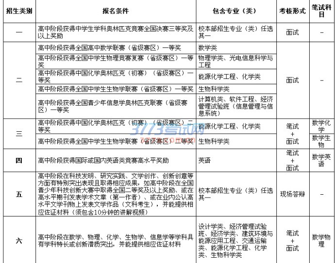 答:如考生在数学、物理、化学、生物学、信息学等学科成绩特别突出并能提供相应佐证材料可以申请报考我校自主招生类别六。