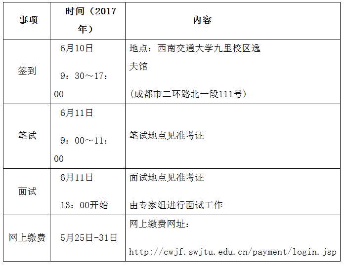 复试时间安排及报名考试收费