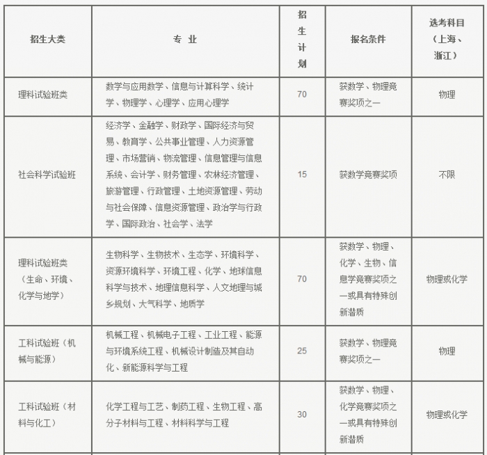 2.志愿填报要求:每位考生限报2所学校志愿,每人只允许填报1个招生大类,填报的招生大类须符合对学科特长和创新潜质的要求,实行高考综合改革的上海市、浙江省考生的选考科目必须符合我校自主招生专业大类的选考科目要求。