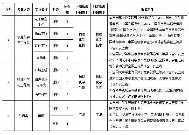 注:上海市和浙江省考生选报专业必须符合我校对选考科目的要求,否则视为报名无效。