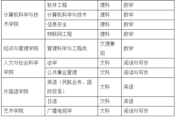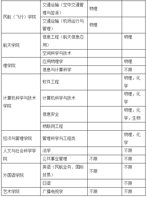 3、考生身体健康状况应符合教育部、卫生部、中国残疾人联合会关于普通高等学校招生体检工作的有关规定;结合民航专业特点,交通运输(空中交通管理与签派)、交通运输(机场运行与管理)要求肝功能正常,色觉正常。交通运输(空中交通管理与签派)专业只招收男生,单眼裸视E字表4.6以上,无语言、发音、听力障碍。