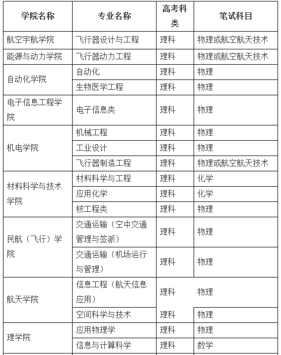各省市(上海市和浙江省除外)的考生可报考自主招生的专业如下: