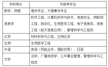 1、考生根据高考报名科类(或选考科目要求)以及自身学科特长、创新潜质、兴趣爱好等情况综合考虑,报考相对应的学院专业(限报一个)。有关支撑材料须与申请专业相关。各类学科特长可报考专业如下: