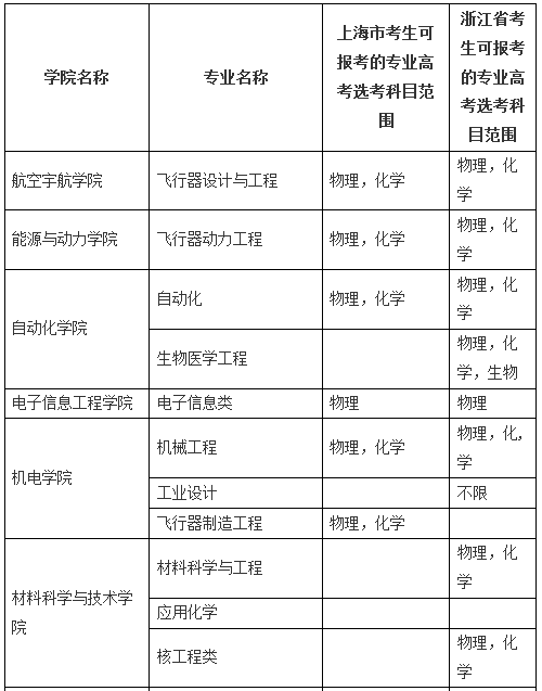上海市和浙江省的考生可报考自主招生的专业(标注选考科目)如下: