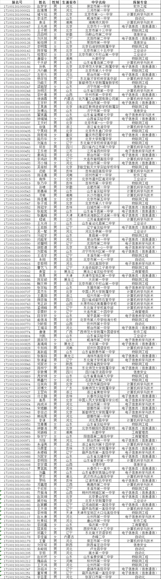 》》》北京邮电大学2017年自主招生报名审核通过名单《《《