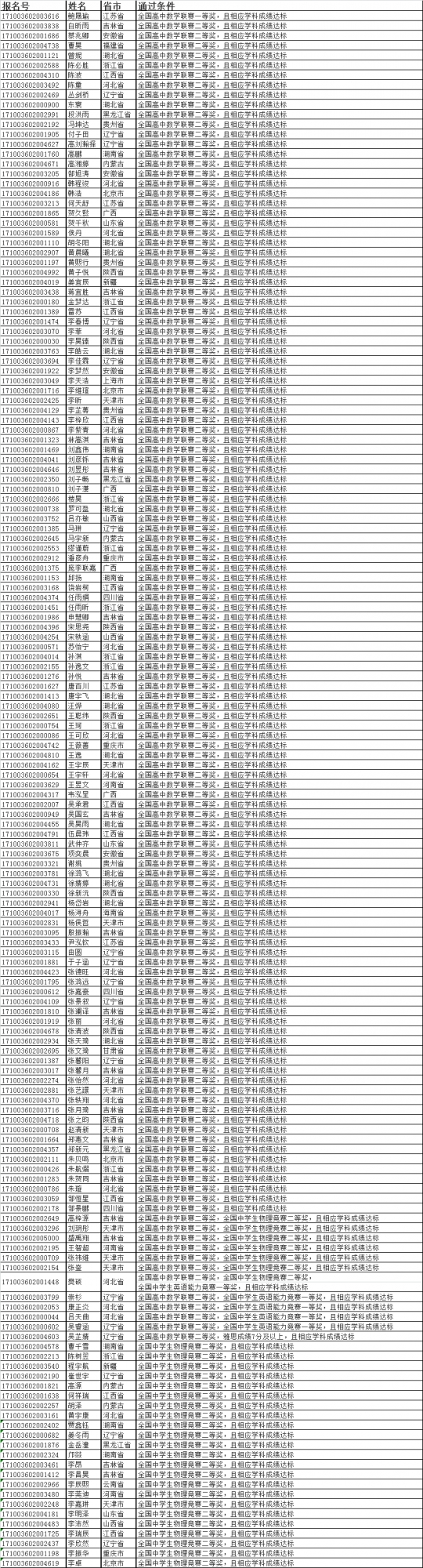 根据学校自主招生初选工作专家组多轮评审和学校招生工作领导小组复审,我校最终确定了自主招生初审合格名单,现将初审合格名单进行公示。如对公示结果有异议,请向我校书面反映。