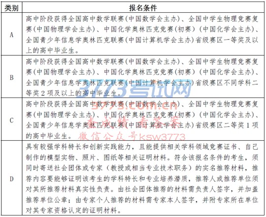 符合国家政策规定,具备2018年全国普通高等学校统一招生考试报名资格的理工类考生(浙江、上海不分文理),且具备下列条件之一者均可申请报名: