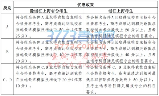 分数线上(对合并本科批次的省份,按相关省级教育行政部门或招生考试机构相关政策执行),按生源地省级招办(考试院)的统一安排和我校相关要求,在自主招生指定志愿位置填报公示专业,可享受以下优惠政策: