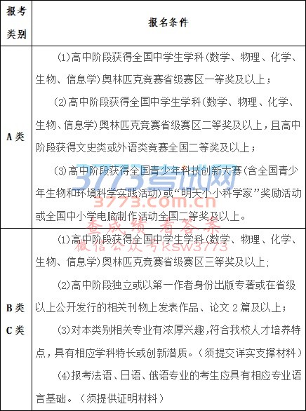符合2018年全国普通高等学校招生考试报名资格,具有学科特长和创新潜质且符合各类条件之一的优秀高中毕业生,均可报名。