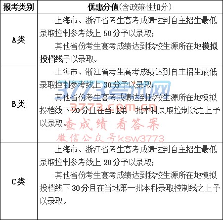 2.自主招生入围考生填报的专业(类)应与获得自主招生合格资格的专业(类)一致,按照A、B、C类对应优惠分值享受优惠,考生入学后不能转入其他专业学习。