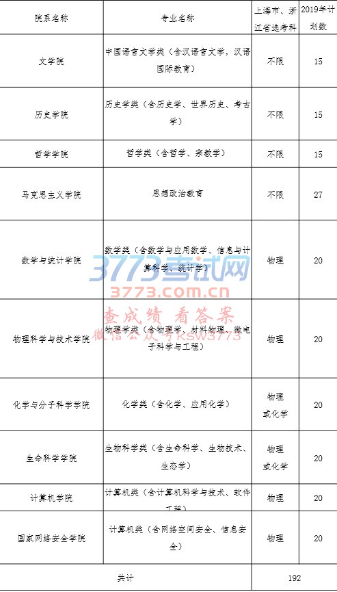附件:武汉大学2019年自主招生分专业计划