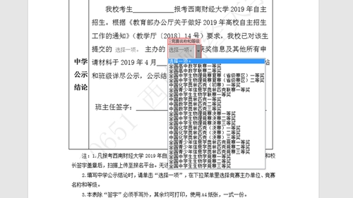 11.《西南财经大学2019年自主招生公示无异议证明》怎么填?