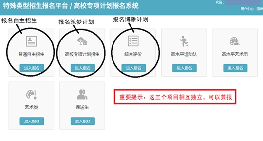 自主招生、筑梦计划、博雅计划的报名入口在哪里?