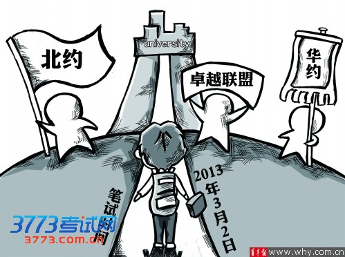 》记者观察 考生只得放弃赶场直接“三选一” 往年,“三大联盟”为抢夺生源,屡有“撞车”之举,因此被媒体戏称为“三国杀”。今年,三大联盟统一将笔试时间确定时间为2013年3月2日,致使学生不得不从三大联盟中“三选一”,直接减少了考生“赶场”的机会。