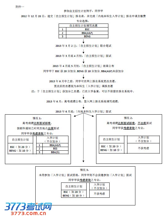 完成以上步骤的申请者,无论是否获选「联合考试」笔试,面试及加分,均自动纳入「入学计划」考虑,且无需再缴付任何申请费用。