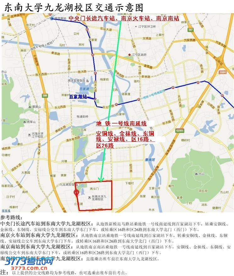 驾车前往东南大学九龙湖校区的线路: