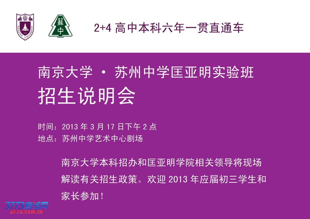2013年南京大学·苏州中学匡亚明实验班招生说明会