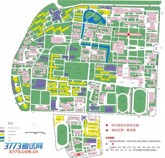 卓越大学联盟学科基础测试“同济大学考点”示意图