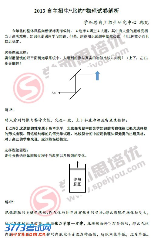 2013北约华约卓越自主招生物理试卷解读