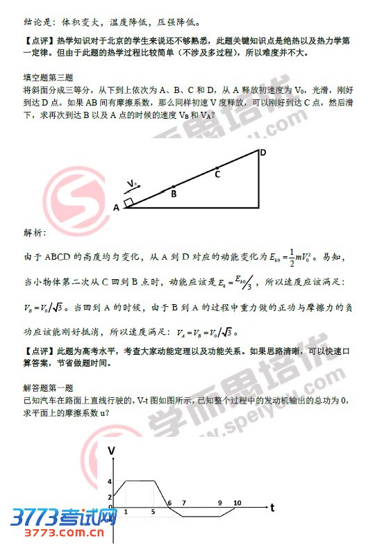 2013北约自主招生物理试题答案解析