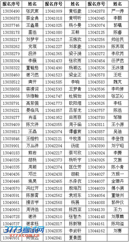 华中科技大学2013自主招生A类校考四省复试资格考生名单