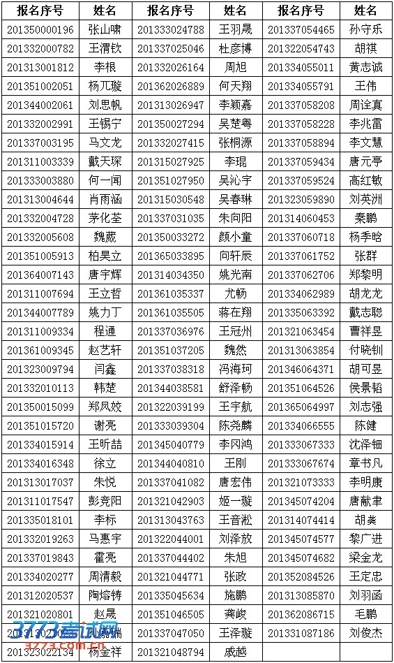 华中科技大学2013年自主选拔录取A类计划联考入围考生公示名单