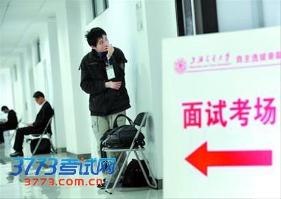 昨天,一名考生正在上海交大自招考场外等候面试。 本报记者 张驰 摄