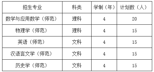 (一)学业水平测试(高中会考)科目(不包括自选综合)有4门及以上为A等,且和报考专业相对应的学业水平测试科目须为A等﹝其中报考数学与应用数学(师范)专业,数学科目须为A等;报考物理学(师范)专业,物理科目须为A等;报考英语(师范)专业,英语科目须为A等;报考汉语言文学(师范)专业,语文科目须为A等;报考历史学(师范)专业,历史科目须为A等﹞,其余科目为C等及以上。